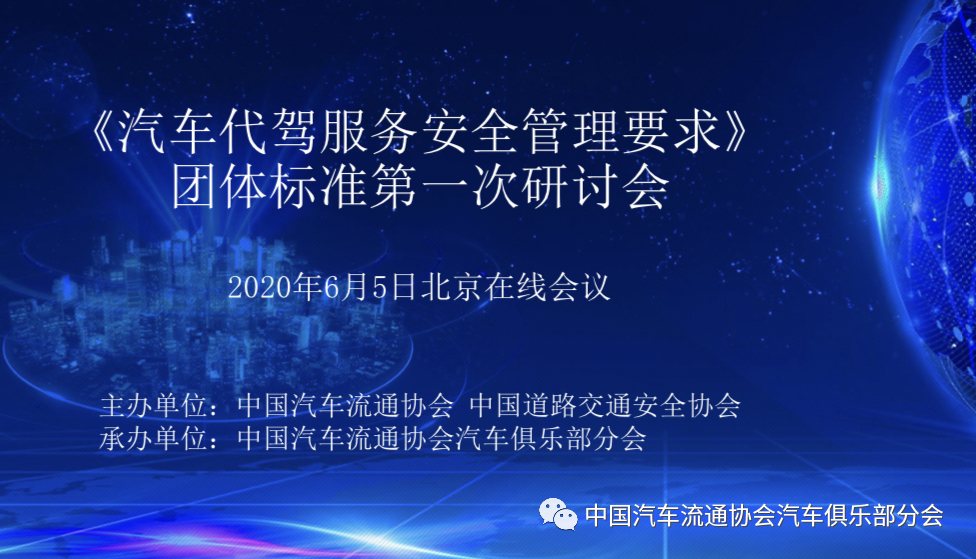 2020年6月5日,乘全国两会胜利闭幕东风,中国汽车流通协会与中国道路交通安全协会共同组织召开了第一次《汽车代驾服务安全管理要求》(以下简称要求)团体标准研讨会,会议采用网络在线召开方式进行。