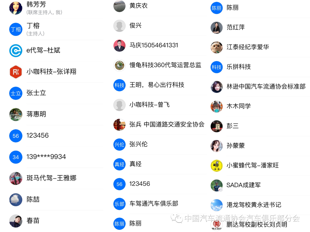 出席本次研讨会议的嘉宾有中国标准化研究院研究员万福军,中国道路交通安全协会主任张兵,山东省汽车流通协会秘书长邵维民、中国汽车流通协会汽车俱乐部分会秘书长张士立、中国汽车流通协会标准部副主任林逊、汽车俱乐部分会副秘书长韩芳芳、主任于亚辉、周森、山东省汽车流通协会副秘书长成建军。参会单位有北京亿心宜行汽车技术开发服务有限公司(e代驾)、四川小咖科技有限公司、长春盛弘安汽车服务有限公司、武汉斑马出行科技有限公司、苏州小蜜蜂汽车服务有限公司、北京易心出行科技有限公司、哈尔滨市乐拼科技有限公司、青岛路远信息技术有限公司、临沂世华汽车销售服务有限公司、南昌剑军汽车服务有限公司、河南爱伊信息技术有限公司、青岛路远信息技术有限公司、成都车把式汽车租赁有限公司、成都大华亿隆科技有限公司、太原市玖佳司机汽车代驾服务有限公司、江泰保险经纪股份有限公司、中国太平洋财产保险股份有限公司浙江分公司等,汽车俱乐部分会副主任丁榕、方文列席本次会议。中国汽车流通协会汽车俱乐部分会秘书长张士立主持此次研讨会。