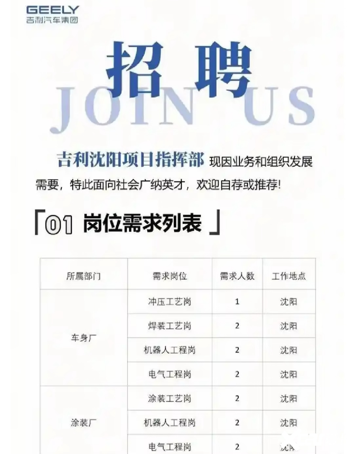 此次改造由沈阳吉驰汽车主导,计划投入近8.9亿元将工厂升级为智能化新能源生产基地。天眼查信息显示,沈阳吉驰由沈阳大东区国资委全资控股,注册资本50亿元。目前吉利已启动沈阳工厂的招聘工作,涉及冲压、焊装、总装、质量控制等多个核心岗位,将为当地创造大量就业机会。