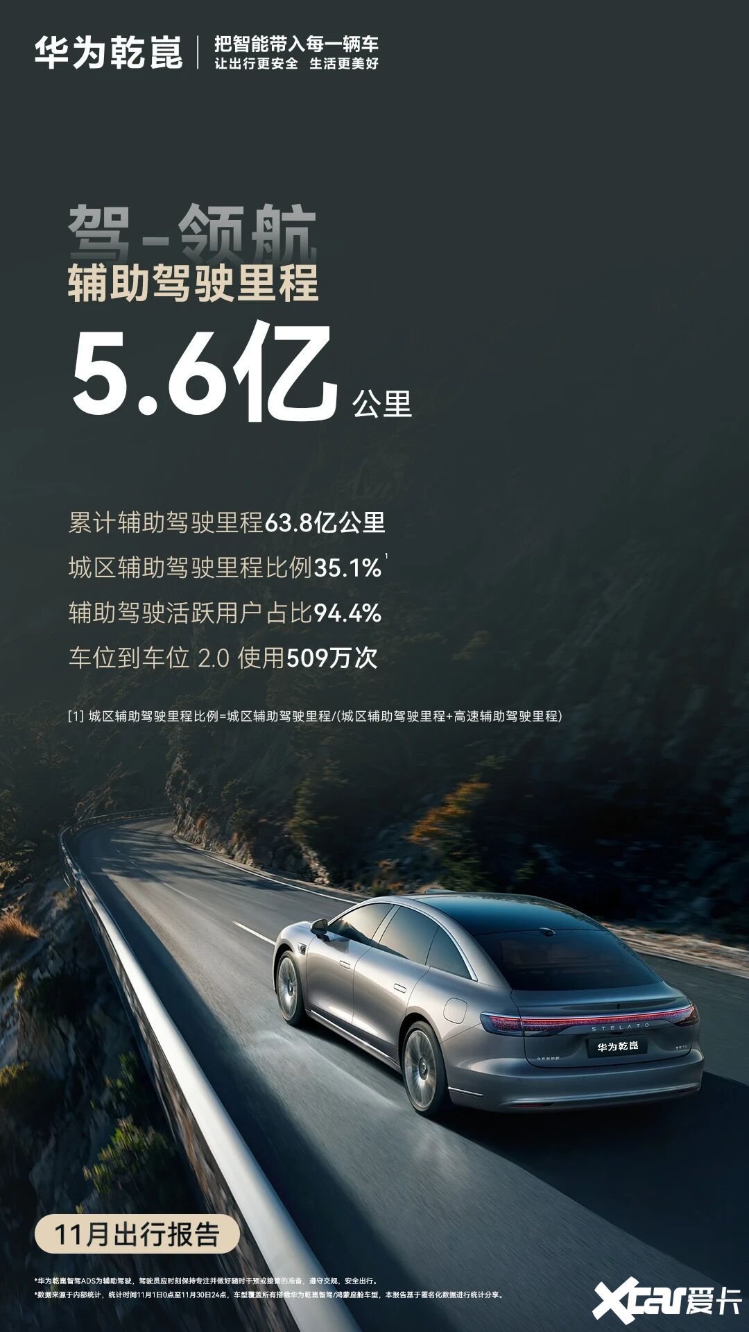 技术的领先性更转化为市场的高度认可。截至目前,华为乾崑智驾的累计辅助驾驶里程已突破 63.8亿公里。城区辅助驾驶里程比例35.1%,辅助驾驶活跃用户占比94.4%。其中仅11月,辅助驾驶里程就达到5.6亿公里,辅助泊车使用4084万次,更是主动避免了可能的碰撞26万次。
